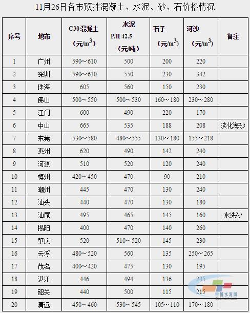 近期,廣東省價格監(jiān)測中心組織部分市價格監(jiān)測機(jī)構(gòu)對砂石、水泥、混凝土價格運(yùn)行情況進(jìn)行跟蹤調(diào)查,結(jié)果顯示:經(jīng)過今年三季度價格快速上漲后,目前全省砂石、水泥、混凝土價格仍在高位運(yùn)行。......